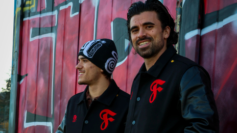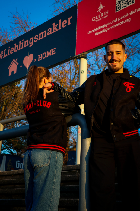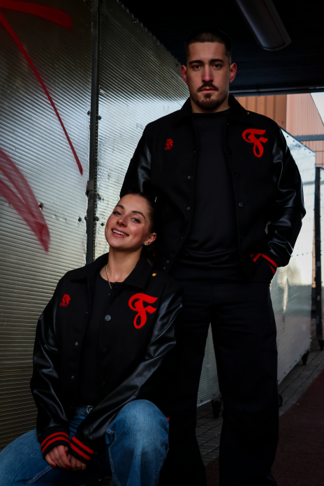 Der Jackenkörper besteht aus einem festen, warmen Material, während die Ärmel in hochwertiger Lederoptik zusätzlichen Charakter verleihen. Die präzise gestickten roten Fortuna-Details – darunter das markante F-Logo – setzen klare Highlights und unterstreichen den Premium-Anspruch der Jacke.